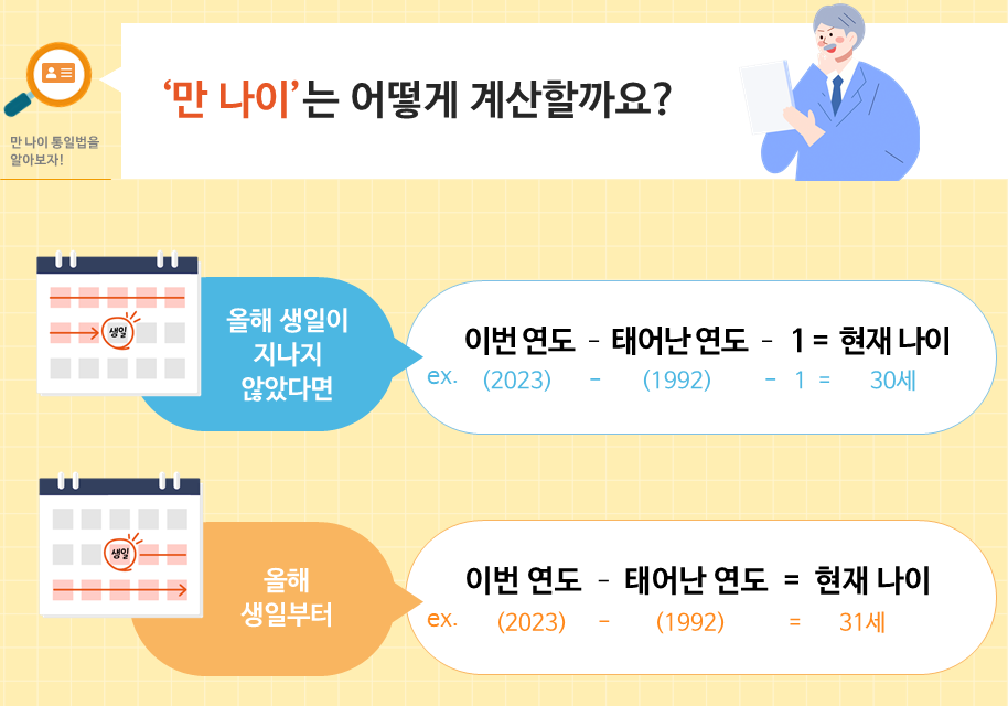 만 나이 통일법 관련 만나이 계산 방법, 적용일, 적용 예외 정리했습니다.