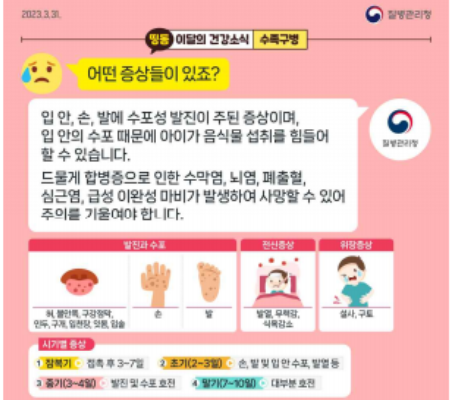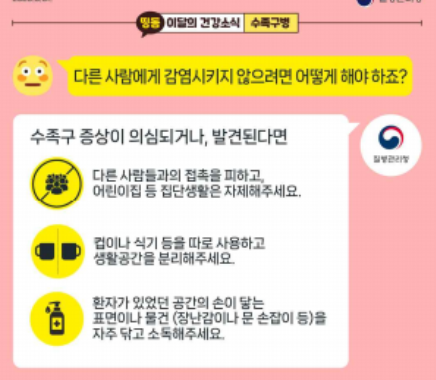 수족구병을 예방하기 위해 다음과 같은 위생 관리를 철저히 해야 합니다: