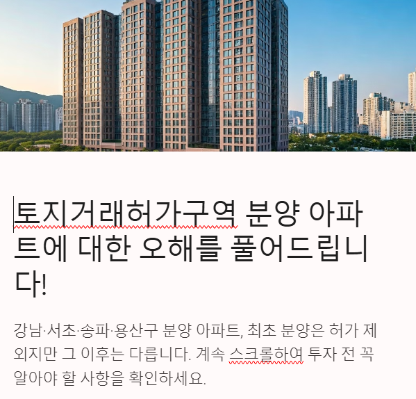 먼저 핵심부터 말씀드리면, [토지거래허가구역 내에서 공급되는 아파트]라고 하더라도 [최초 분양]에 한해서는 [토지거래허가 대상에서 제외]됩니다.