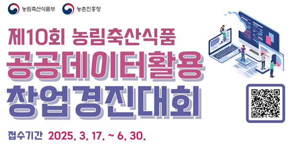 농식품 공공데이터를 활용한 창업을 꿈꾸는 분들에게 희소식이 있습니다! ‘제10회 농림축산식품 공공데이터 활용 창업경진대회’가 개최됩니다. 창의적인 아이디어를 가진 누구나 도전할 수 있는 이번 대회는 농업·축산·식품 분야의 혁신적인 스타트업을 위한 기회가 될 것입니다.