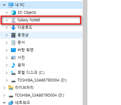 일단 PC 연결을 한 후 각 폴더별로 하나하나 검토를 하니 드디어 발견.